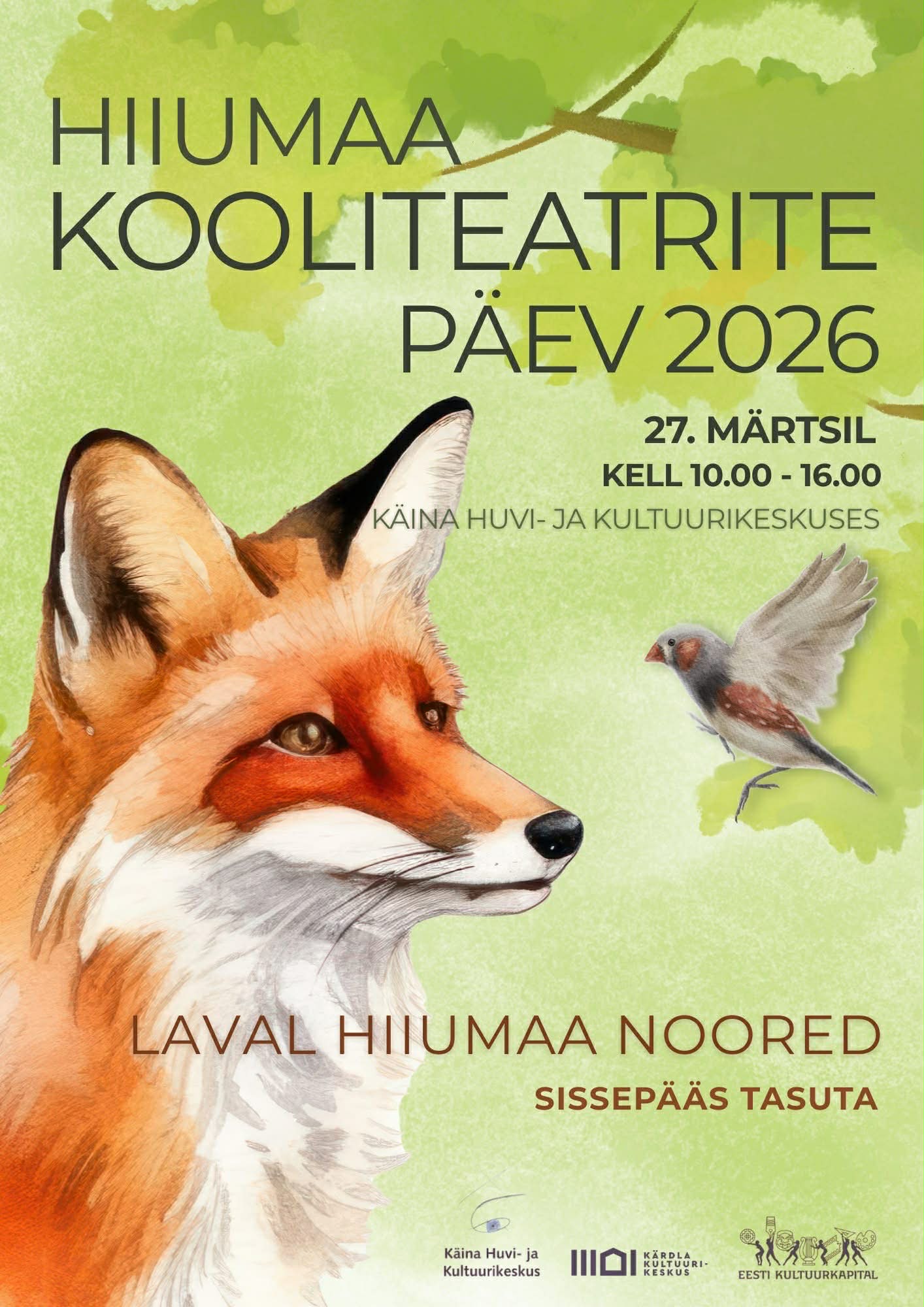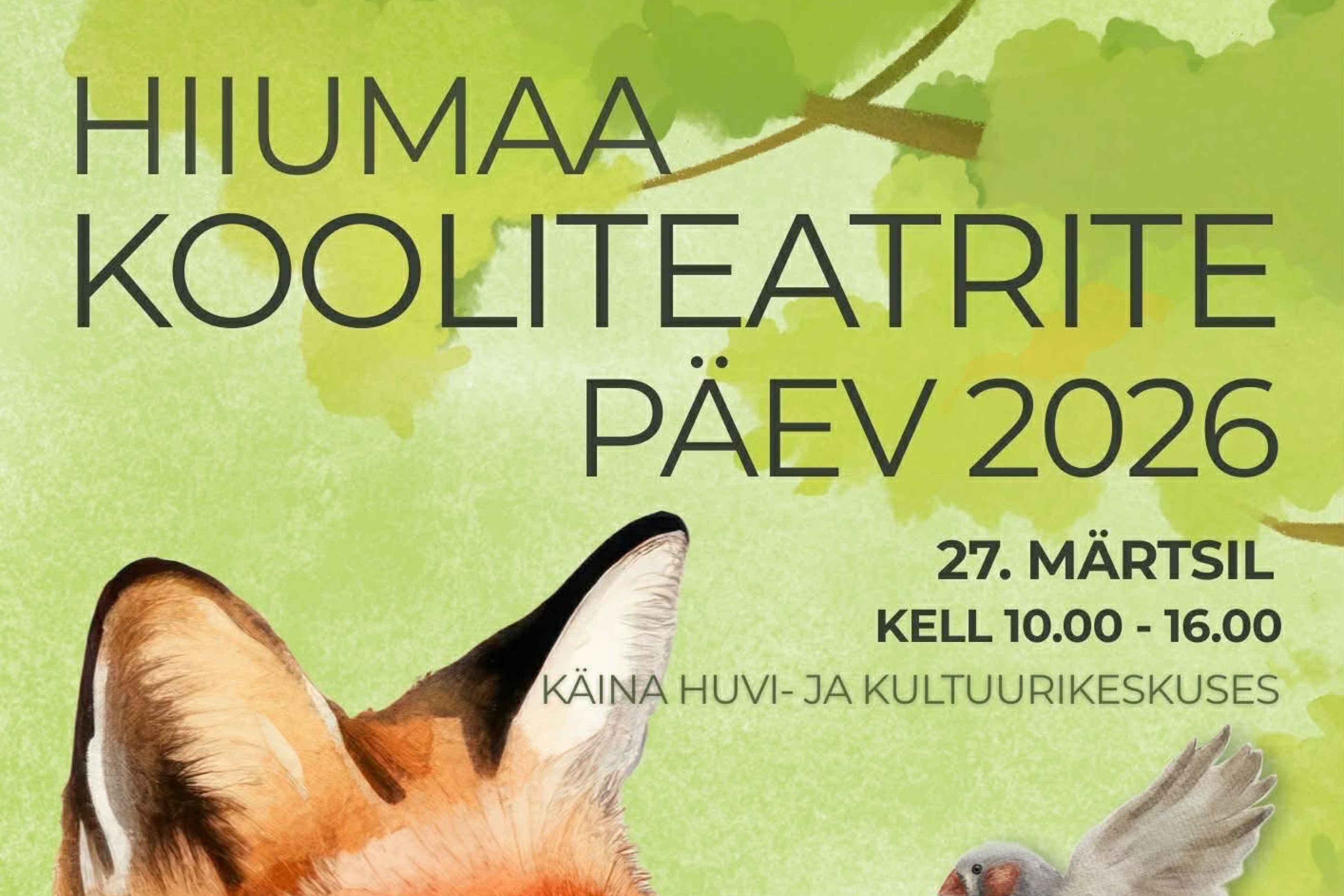 Juba homme, 27. märtsil toimub Käina Huvikeskuses Hiiumaa kooliteatrite päev 2026, kus lavale astuvad noored teatritegijad üle Hiiumaa.