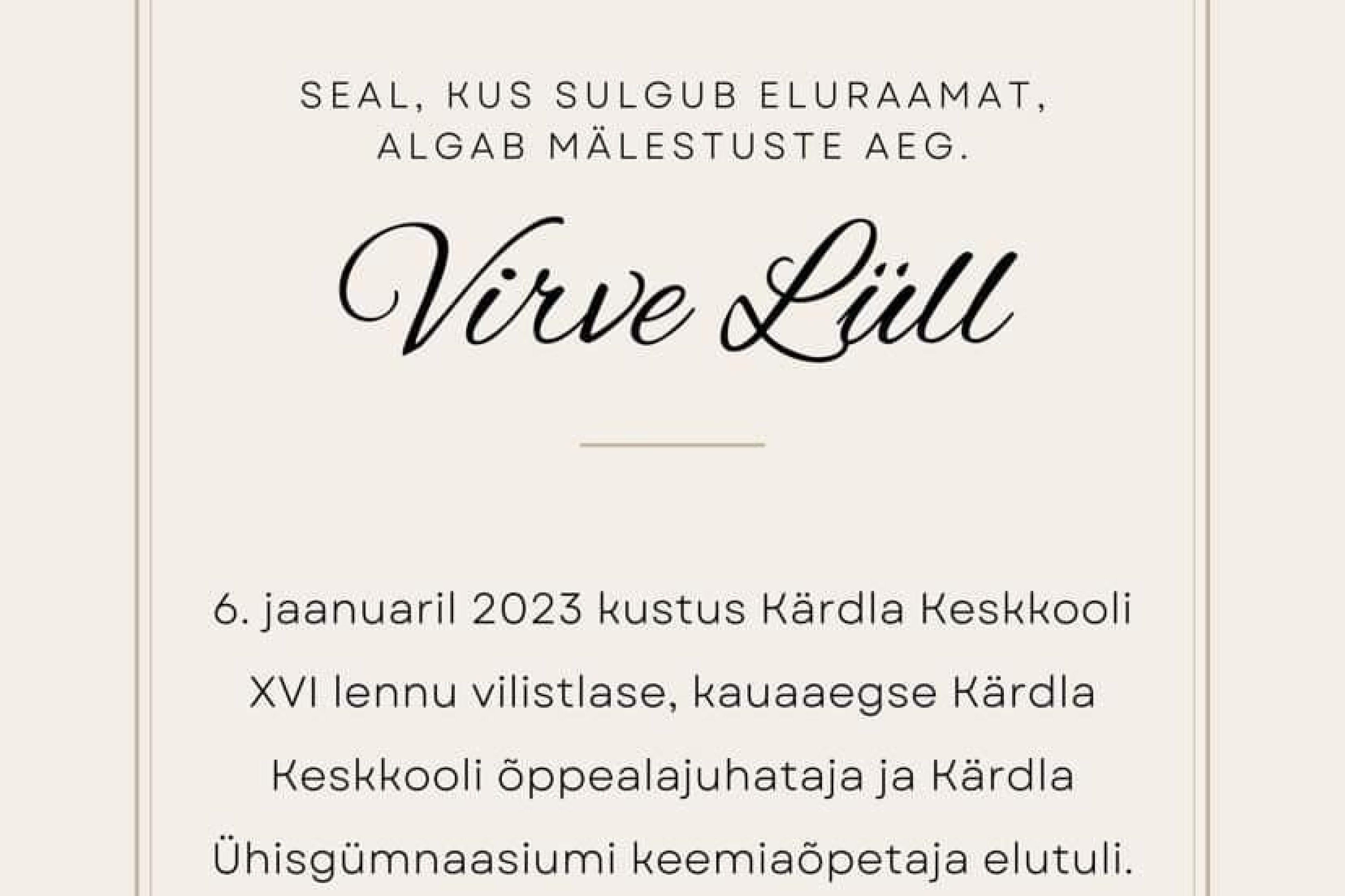 Hüvasti, Virve Lüll! | Kärdla Kool