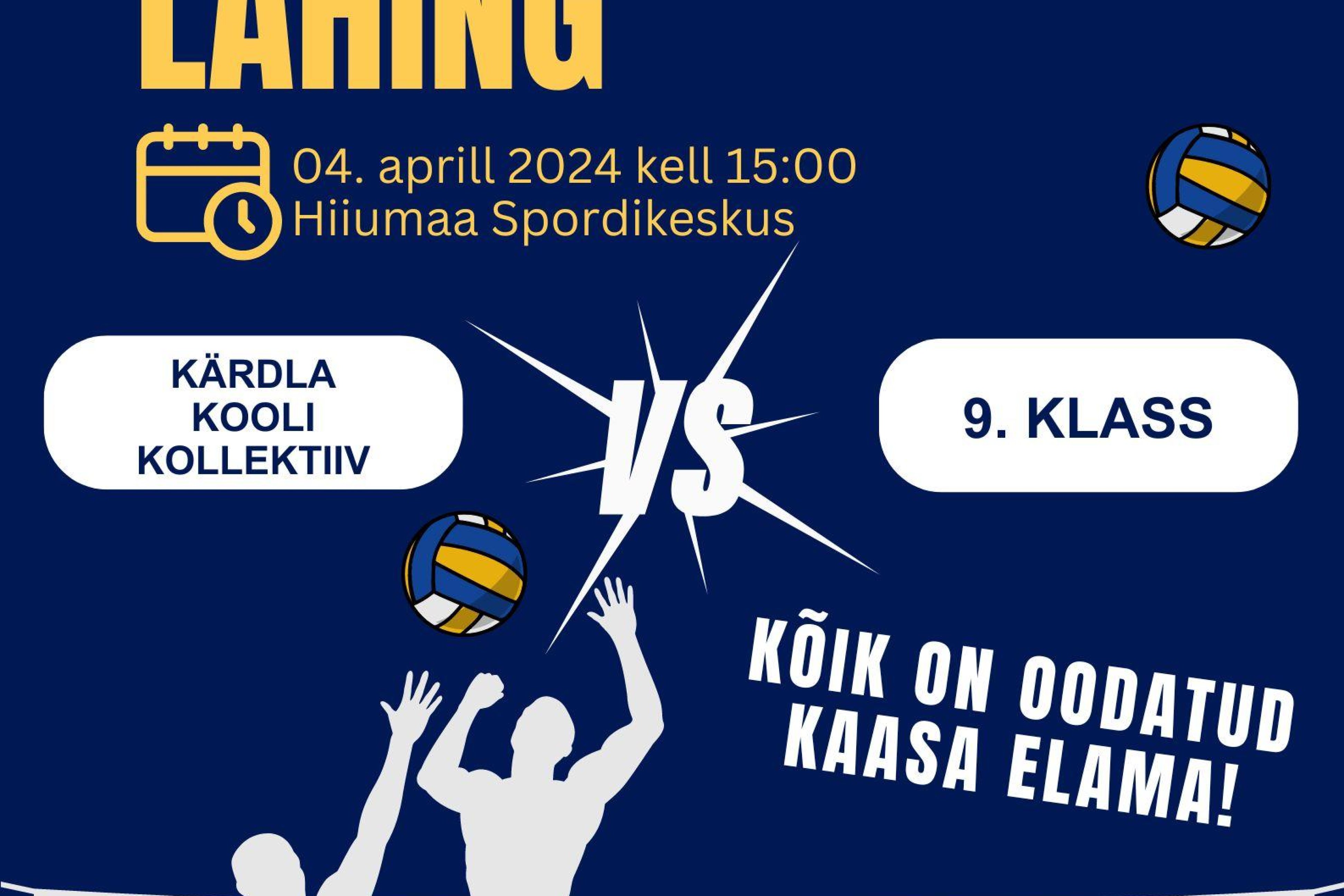 Juba sel neljapäeval, algusega kell 15:00 toimub Hiiumaa Spordikeskuses võrkpalli lahing, kus omavahel võtavad mõõtu Kärdla Kooli kollektiiv ja 9. klassi õpilased.