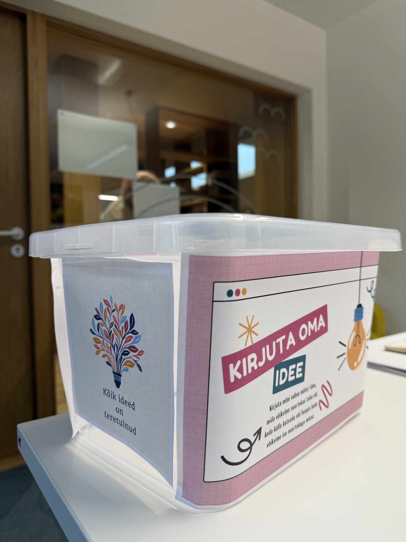 Kooli fuajeesse tuleb ideekast, kuhu saab panna oma mõtte või ettepaneku – näiteks, mida võiks Noortekas kooliõues teha, keda kutsuda külla või kuhu koos Noortekaga minna.