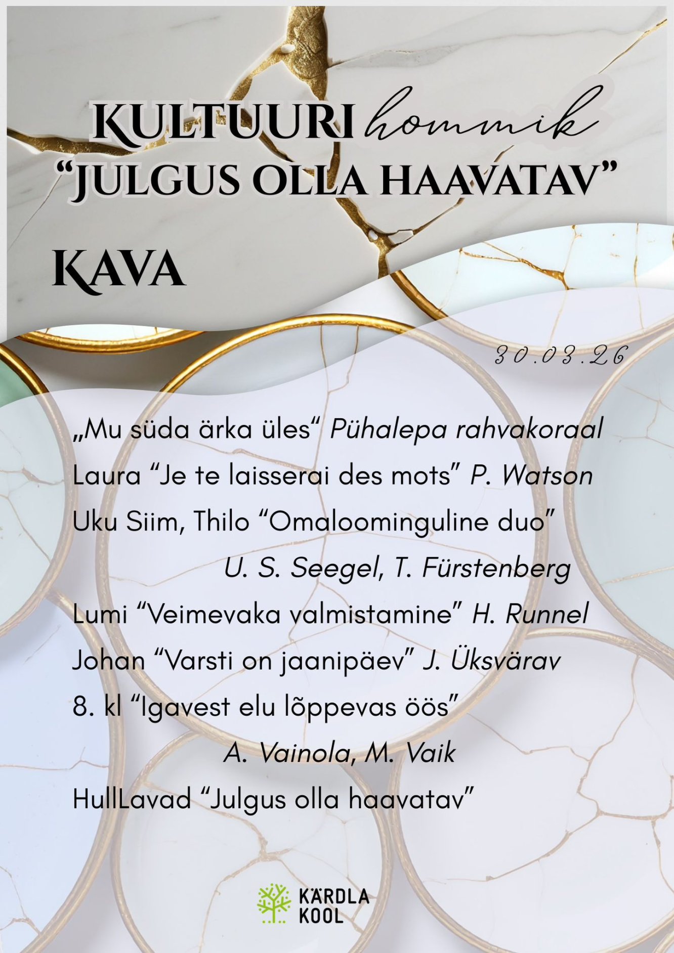 Esmaspäeval, 30. märtsil täitub Kärdla Kool taas mõtete, tunnete ja loominguga – toimuvad selle kevade kultuurihommikud.